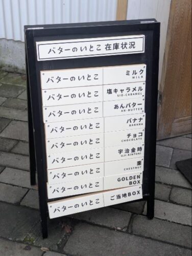 ソフトクリームを堪能しながらふと【バターのいとこ 在庫状況】の看板を見るとチョコと宇治金時以外は完売でした‼️‼️‼️
