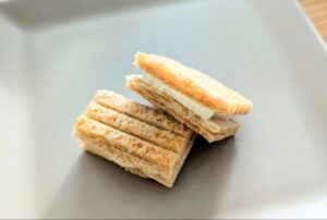 中央から半分に割れるように工夫されており、一口サイズで食べれるのでこぼさず食べることが出来ます!